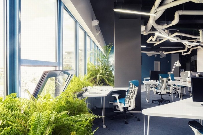 辦公室裝修設(shè)計(jì)以開放的格局營(yíng)造寬敞的空間體量,清新靚麗的色彩和豐富的材質(zhì)肌理令整個(gè)空間有著大學(xué)校園般的青春氛圍。可調(diào)節(jié)高度的升降桌、充滿活力的綠植墻、提供健康飲食和零食的自助餐吧,體現(xiàn)以人為本的設(shè)計(jì)哲學(xué)。協(xié)作區(qū)與員工工位沿窗布局,明媚的陽(yáng)光從開敞的外窗盡情灑進(jìn)室內(nèi),而遠(yuǎn)處蔥蘢的美景也盡收眼底,令人心曠神怡元?dú)鉂M滿。