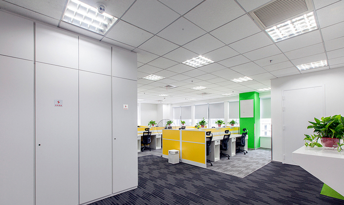 2、天花板裝飾:寫字樓天花板裝修力求簡潔,建議大家采用石膏板和礦棉板或鋁扣板吊頂,而且只在重點區(qū)域,如接待區(qū)、會議室做一些石膏板造型天花,其他地方則是采用礦棉板天花,沒有任何造型可言;