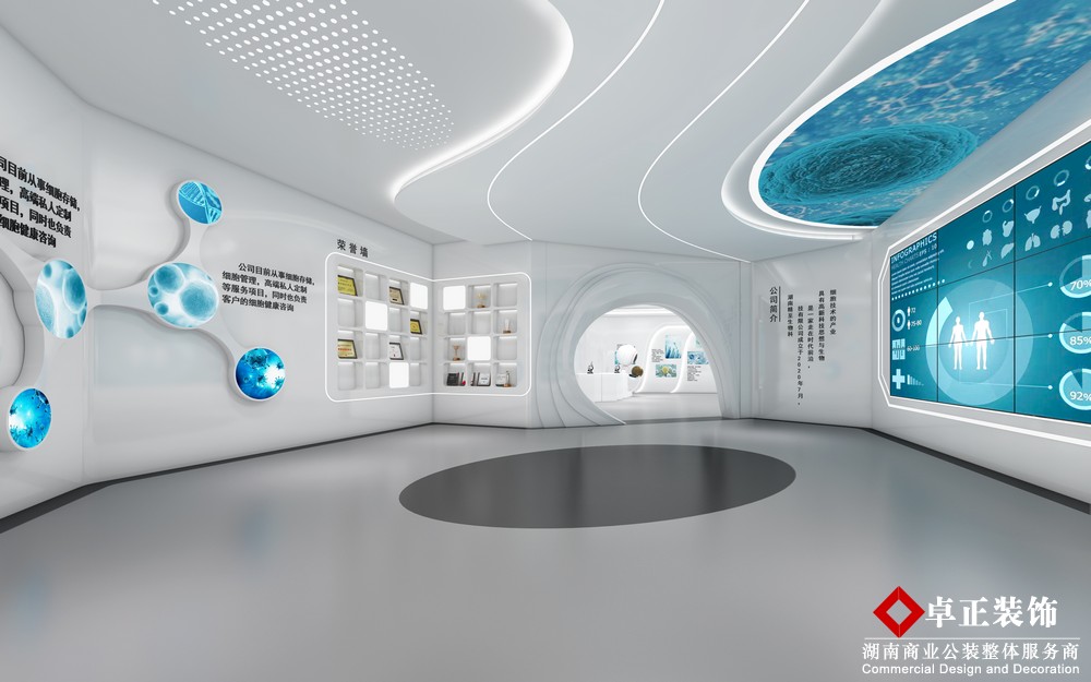 首頁 > 精品案例 > 湘潭精至生物|1000平展廳裝修設計